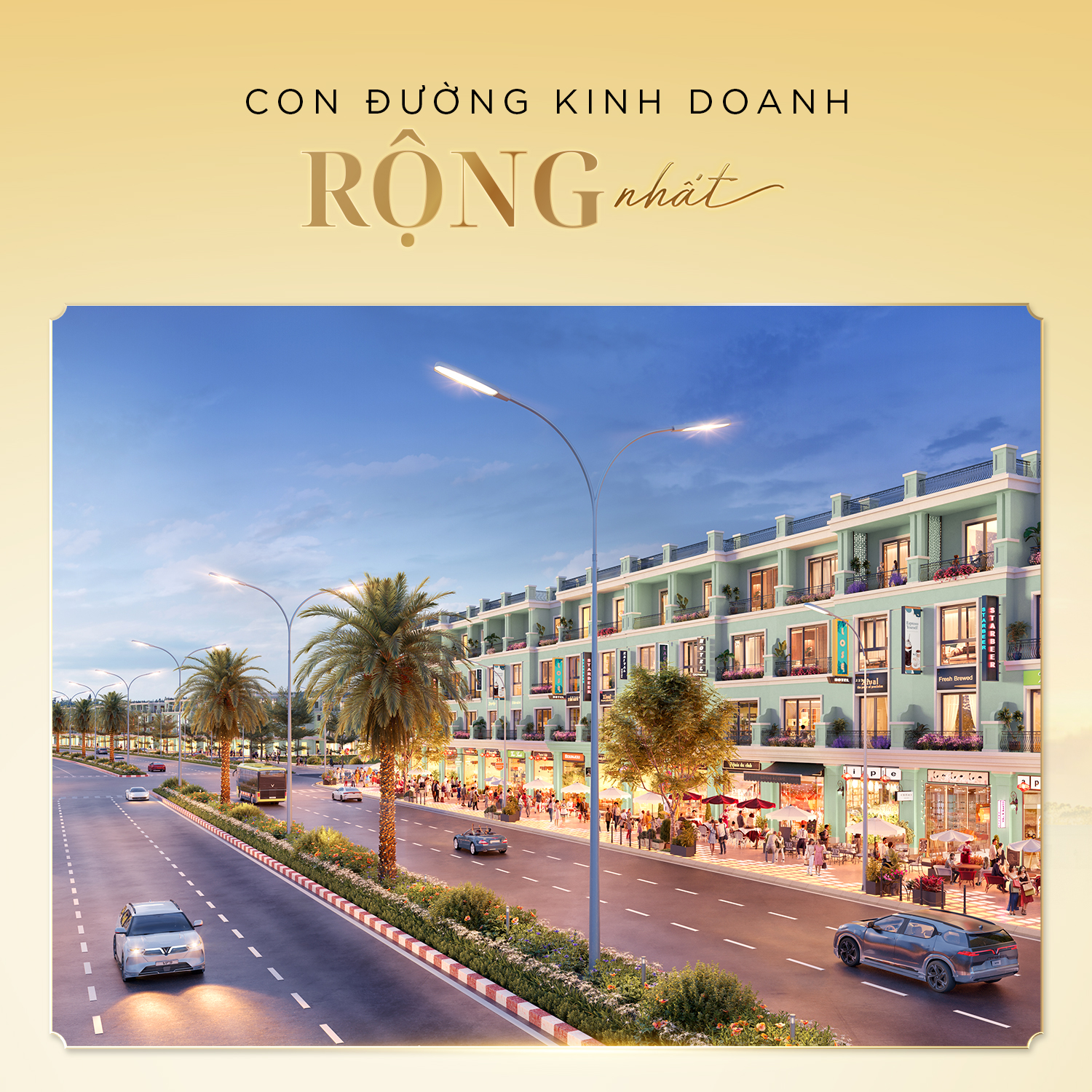 Tuyến đường Tương Lai - Hạnh Phúc với độ rộng từ 24 - 42m là tuyến đường nội khu rộng nhất trong toàn dự án. Không chỉ vậy, vỉa hè rộng tới 3m giúp khách hàng dễ dàng đậu xe & giúp chủ shop tăng diện tích trang trí cửa hàng. Vị thế “cận lộ” giờ đã trở thành chìa khóa vàng cho tiềm năng kinh doanh tại nhà phố Song Diện.