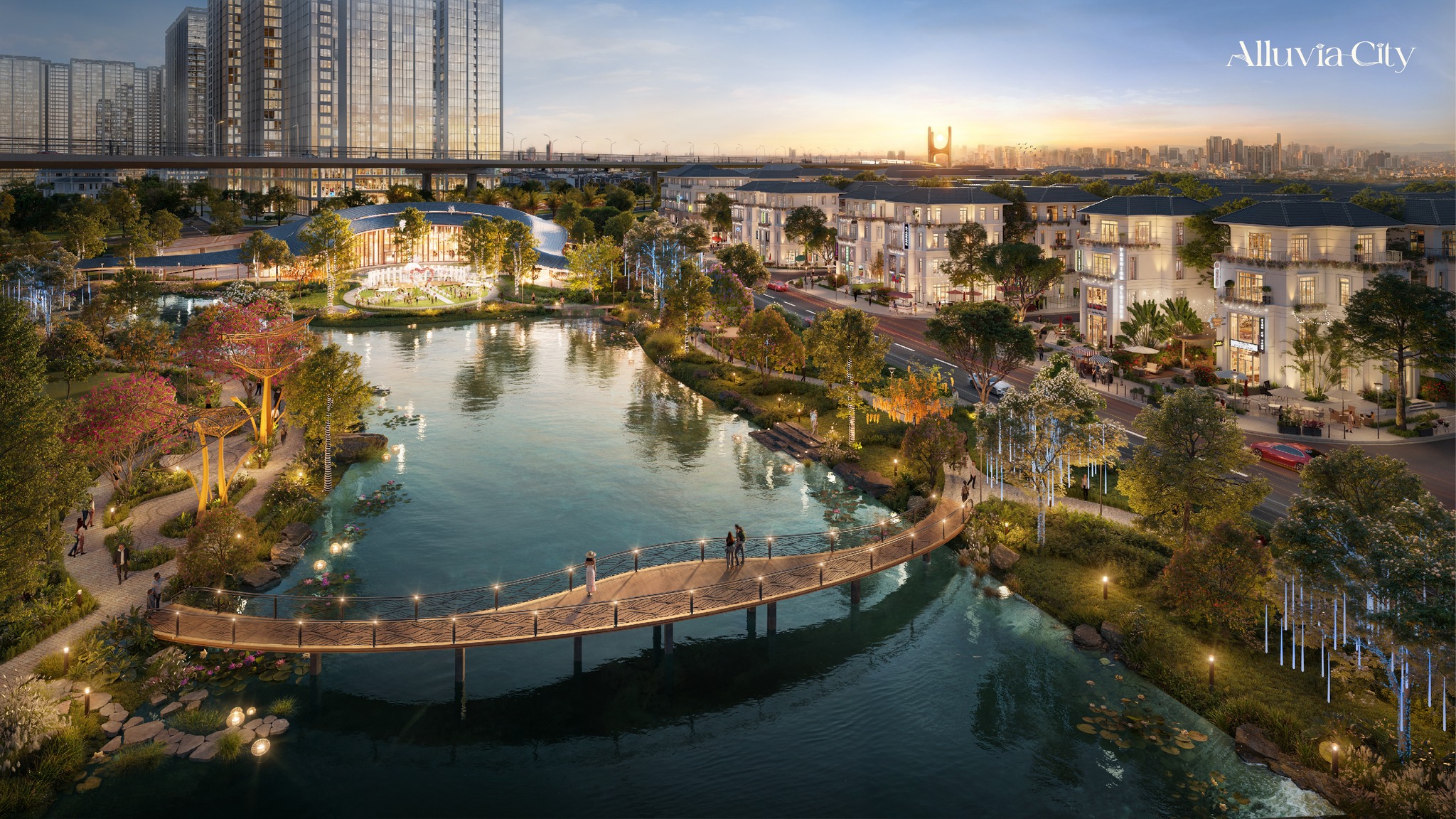 Ở Alluvia City, mọi thiết kế kiến trúc & cảnh quan đều dựa trên nguyên tắc tối ưu trải nghiệm của cư dân. Giữa làn gió sông mát lành, dãy phố thương mại bên hồ của Alluvia City mở ra một không gian sinh thái hiếm có – nơi cây xanh và mặt nước tạo nên trục cảnh quan đặc sắc.