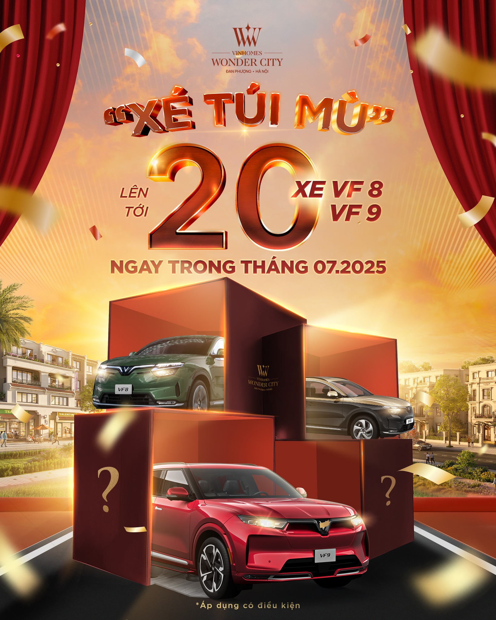 Mỗi giao dịch thành công trong tháng 7 không chỉ là bước tiến trên hành trình sở hữu bất động sản thời thượng phía Tây Hà Nội, mà còn là cơ hội để “mở khóa là trúng” những phần thưởng với tổng giá trị tới 60 tỷ đồng: Cứ mỗi 5 Hợp đồng mua bán được ký kết, sẽ có 1 khách hàng nắm cơ hội sở hữu chiếc xe VinFast VF8 hoặc VF9 – như một biểu tượng cho đẳng cấp sống hiện đại và khả năng bứt phá trong đầu tư.