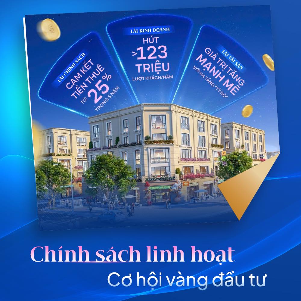 Thiết kế 5 tầng 1 tum, 2 mặt tiền vàng, 6 tuyến phố thương mại được vận hành bởi Vincom Retail hoặc tự doanh, dễ dàng kinh doanh đa ngành hàng từ F&B, dịch vụ cao cấp, văn phòng đại diện... mang lại tiềm năng sinh lời mạnh mẽ.