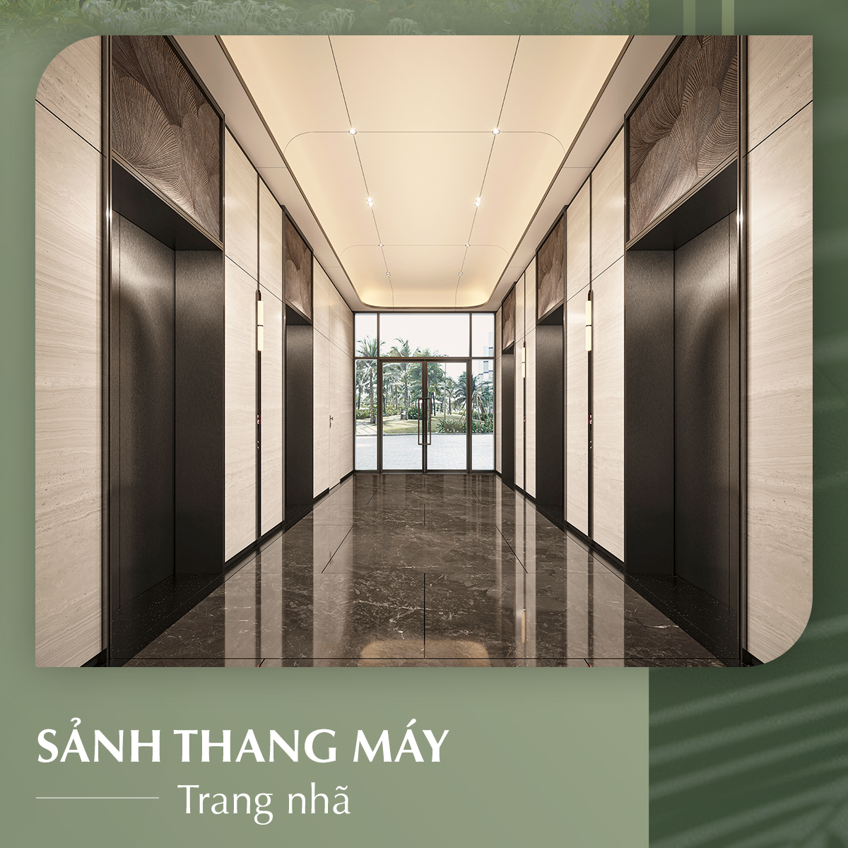 Đến Sảnh thang máy, sắc đen cộng hưởng hài hòa với tông be nhẹ nhàng và những đường vân tự nhiên của gỗ. Từ khung cửa mở ra khuôn viên nội khu, nơi ánh sáng, cây xanh và thanh âm cuộc sống khẽ đan cài, tâm trí dễ dàng tìm về sự lắng dịu, an nhiên. Đặc biệt, bộ sưu tập căn hộ phiên bản giới hạn được tinh tuyển với sảnh chờ thang máy riêng, để mỗi phút giây trở về đều trọn vẹn thư thái trong không gian tĩnh lặng, riêng tư.