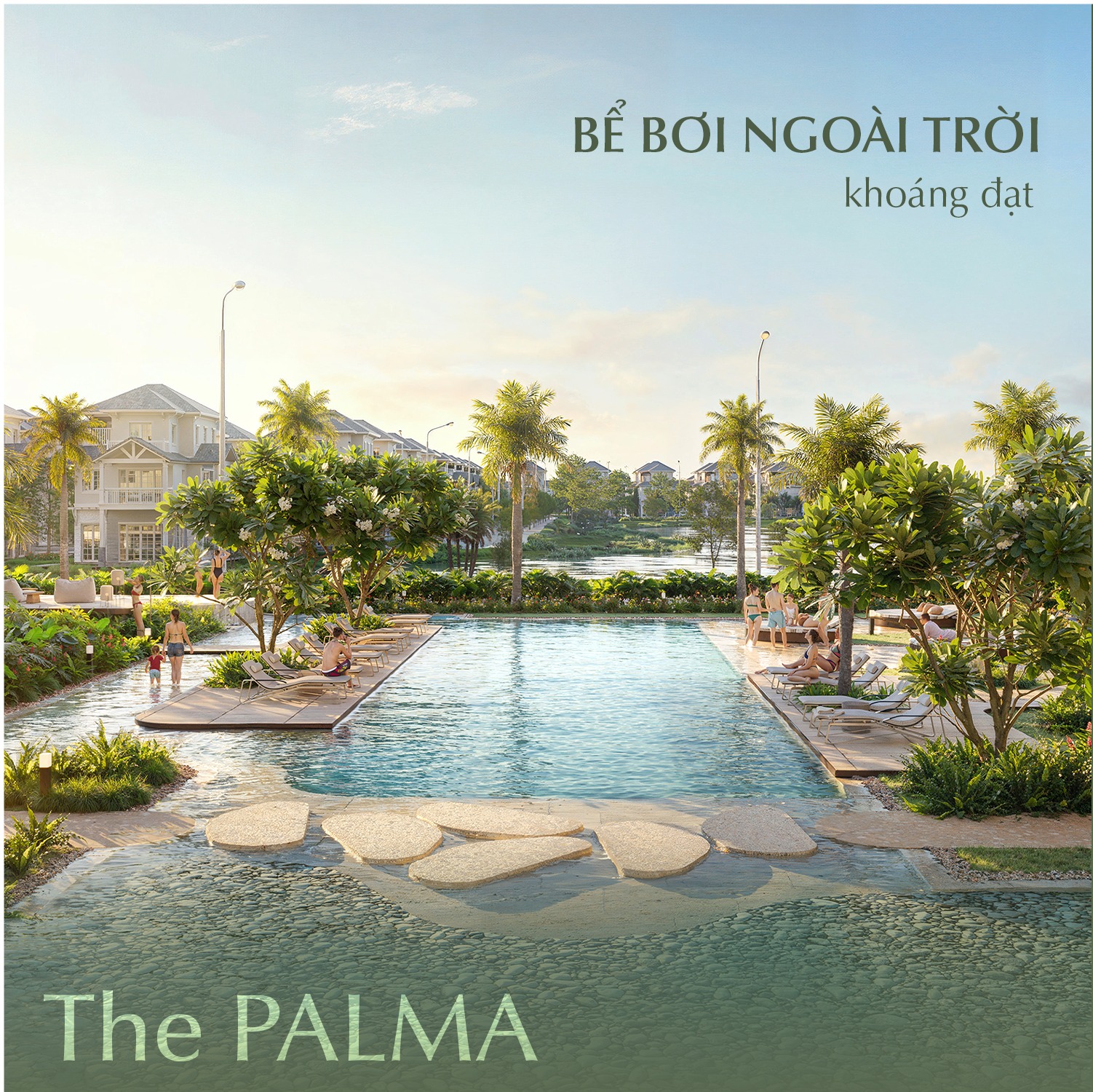 Nơi ánh sáng, gió, nước và cây xanh giao hòa, The PALMA tạo nên một "không gian trị liệu" tự nhiên cho thân - tâm - trí. Hệ thống bể bơi gồm đầy đủ bể bơi người lớn, bể trẻ em, jacuzzi đến bể spa thư giãn giúp mọi thế hệ đều có một góc bình yên dành riêng cho mình. Bên cạnh những phút giây thả lỏng trong làn nước, cư dân có thể tiếp tục hành trình phục hồi với những bước dạo bộ nhẹ nhàng hay liệu pháp xông hơi giúp giãn cơ, điều hòa nhịp thở. Dưới tán cây xanh, sàn tập Yoga mở ra không gian tĩnh lặng thuần khiết để mỗi hơi thở, mỗi chuyển động đều lắng sâu, mang đến những thay đổi tích cực cho cơ thể.