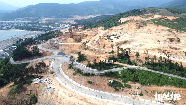Từ tuyến đường ven biển Nguyễn Tất Thành (Đà Nẵng) phóng tầm mắt về hướng đèo Hải Vân có thể nhìn thấy đại dự án đang được san lấp, mở đường phục vụ thi công.