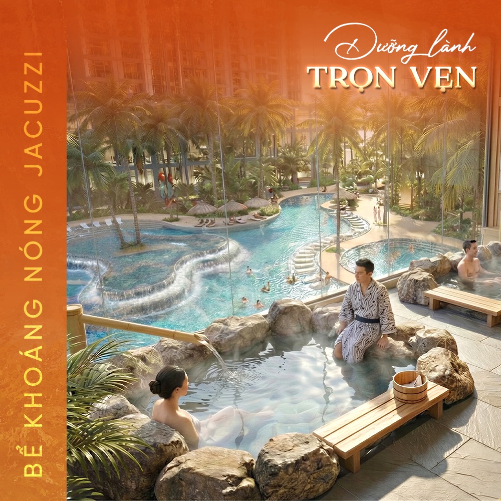 Kết nối đa tầng – Trải nghiệm đa cảm xúc: Từ không gian khối đế thương mại và tiện ích cư dân hiện đại - nơi nhịp sống sôi động mà vẫn hài hòa, đến bể khoáng nóng Jacuzzi đặc quyền cho cư dân tận hưởng 365 ngày khoáng nóng ngay chân nhà. Và trên cao, Sky Ring – hệ cầu nối liên tòa tại tầng 3 mở ra những lối dạo bộ thoáng rộng, phóng tầm nhìn về lõi xanh trung tâm, dẫn dắt cư dân đi qua nhiều cung bậc cảm xúc: từ năng động, kết nối… đến tĩnh lặng, an nhiên.