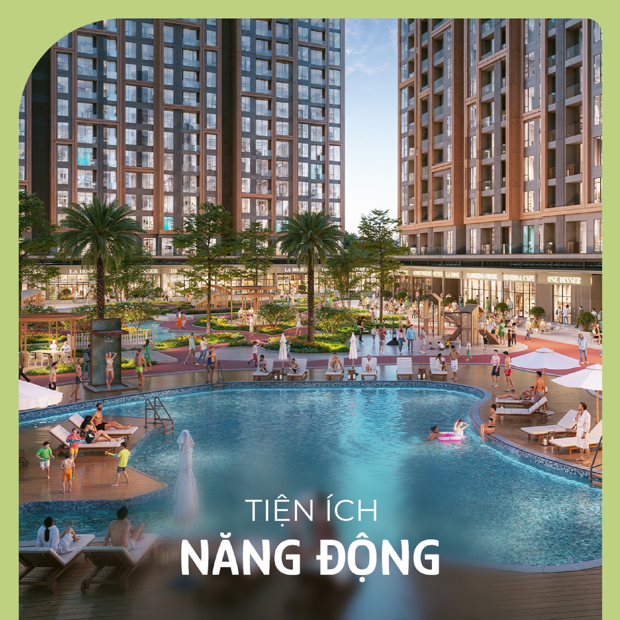 Quảng trường, khu BBQ, sân chơi trẻ em, khu ẩm thực và café ngoài trời là những điểm hẹn quen thuộc, nơi cư dân gặp gỡ, cùng chia sẻ sở thích, cảm xúc, kiến tạo một cộng đồng văn minh, hiện đại.
