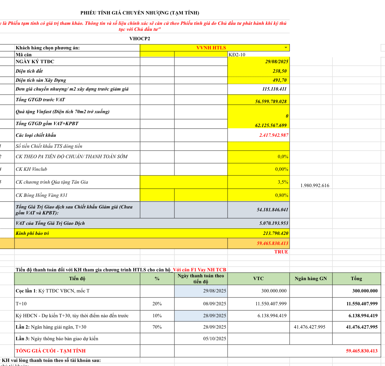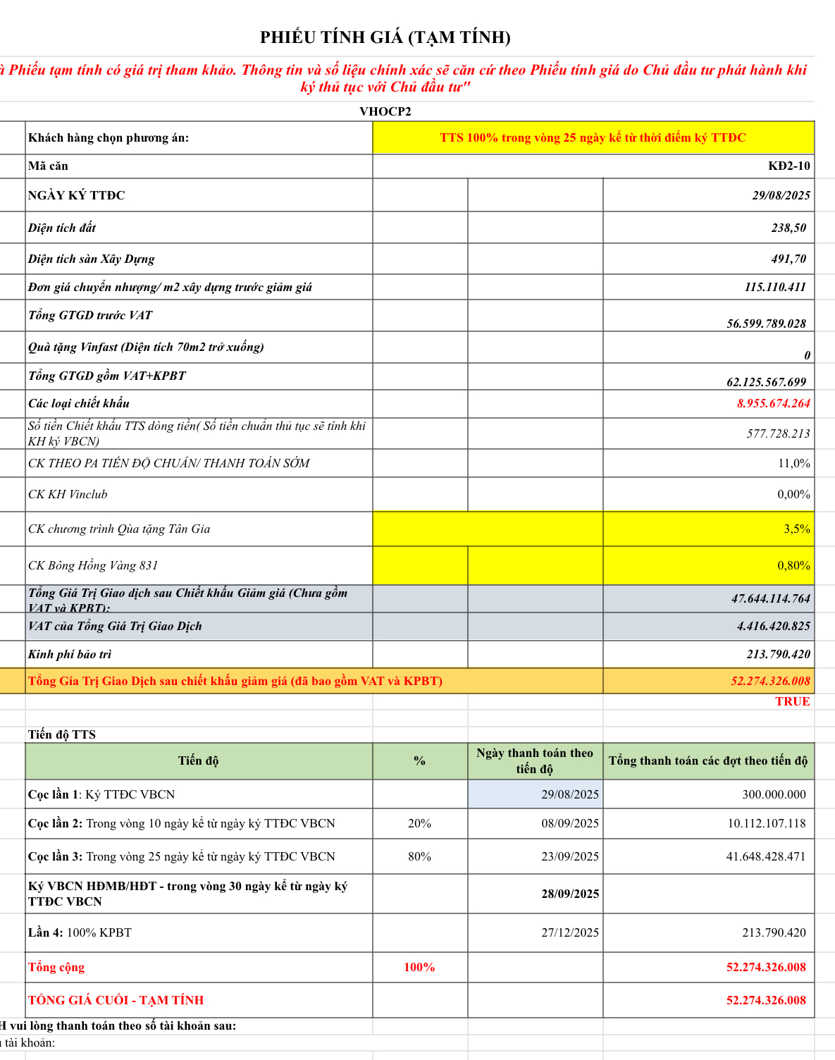 Giá TTS (thanh toán sớm): 52,274 tỷ