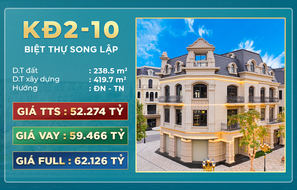🔥 KĐ2-10 – Tuyệt phẩm biệt thự song lập giữa lòng “Đại đô thị biển hồ” – nơi hội tụ đẳng cấp sống thượng lưu và giá trị đầu tư bền vững.