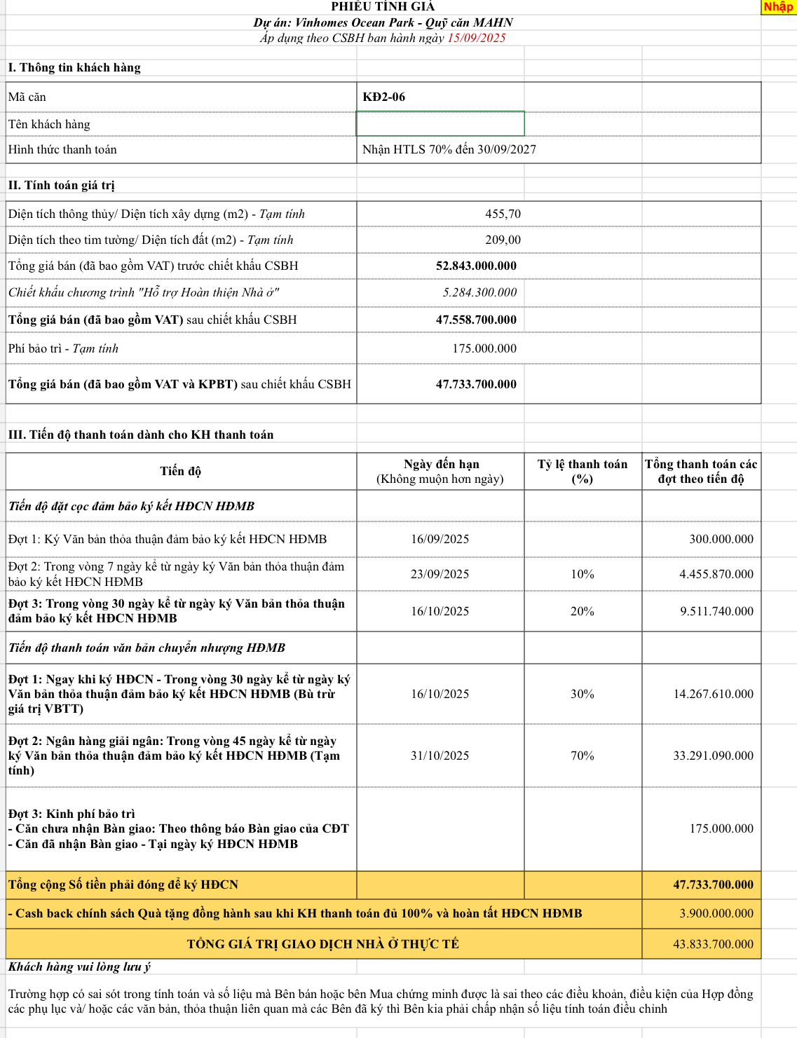 KĐ2-06 Dự án: VINHOMES OCEAN PARK 2