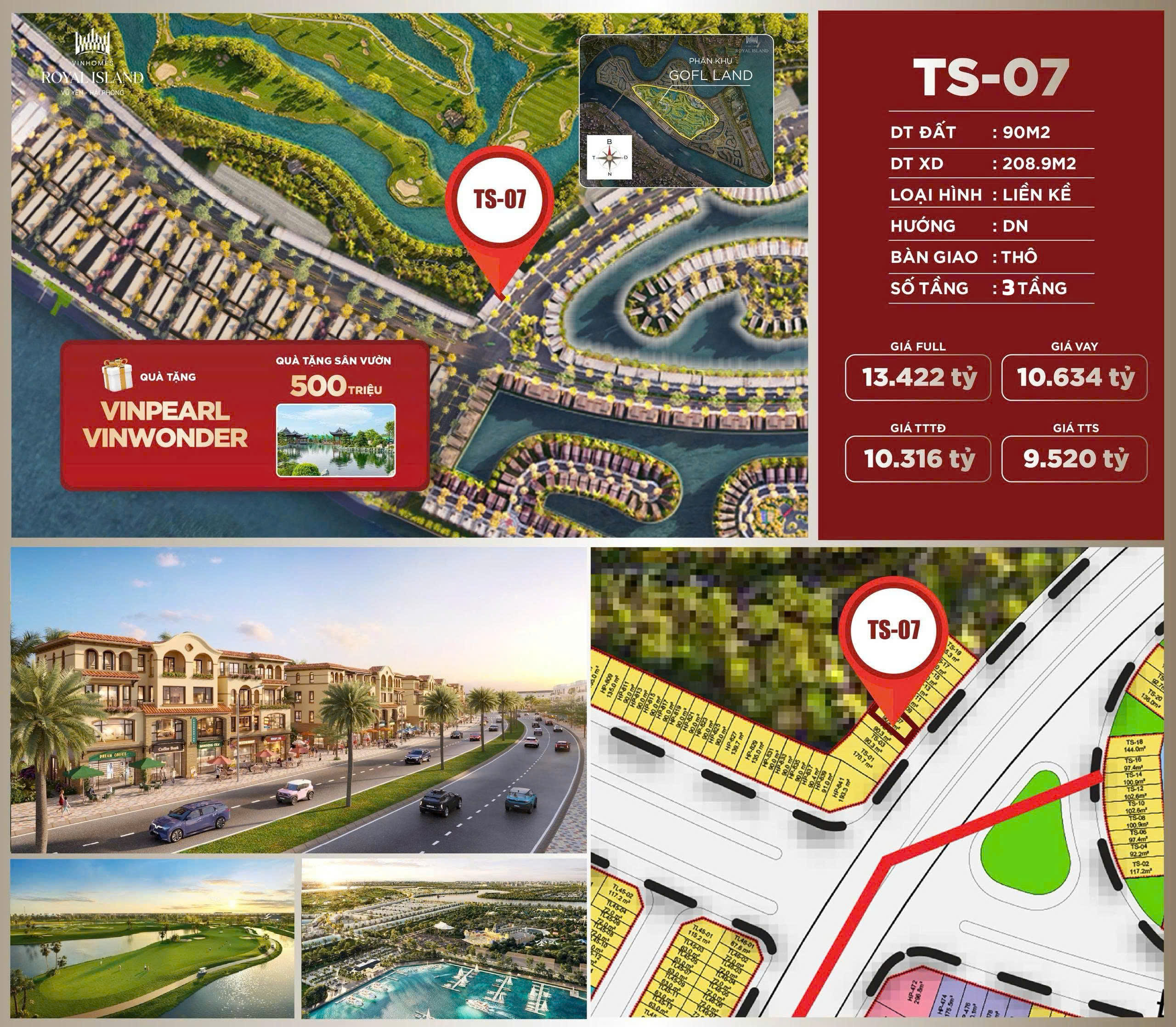 TS-07 là căn Shophouse Liền Kề sở hữu vị trí chiến lược, mang lại giá trị kép độc nhất tại Vinhomes Royal Island (Thành phố Đảo Hoàng Gia). Với diện tích đất 90.2m2 và tổng diện tích xây dựng 208.9m2, căn TS-07 là tài sản đòn bẩy hoàn hảo để đón đầu làn sóng thương mại và du lịch tại Hải Phòng.
