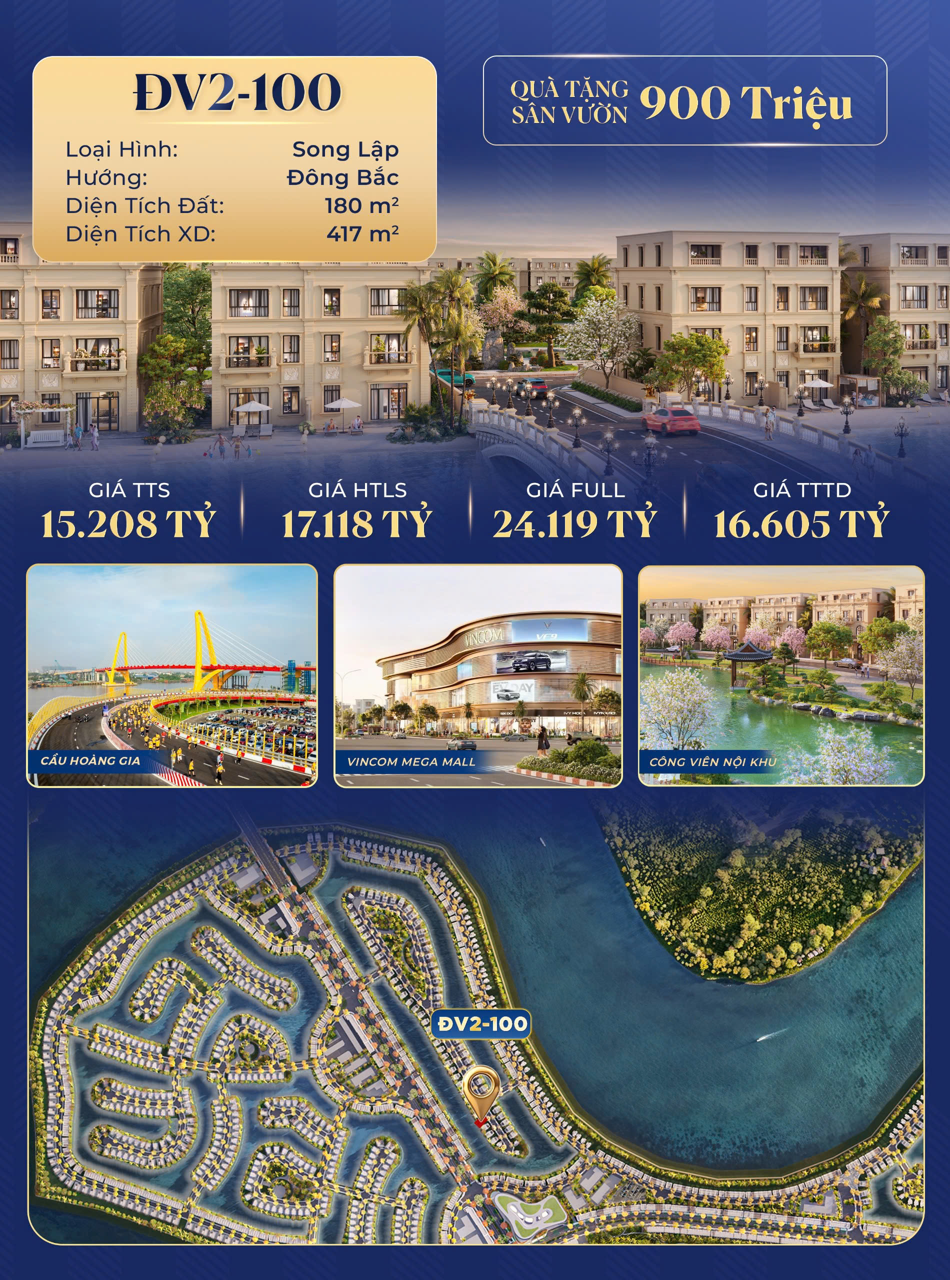 Tiện ích liền kề: Cầu Hoàng Gia, Vincom Mega Mall, Công viên nội khu chuẩn quốc tế.